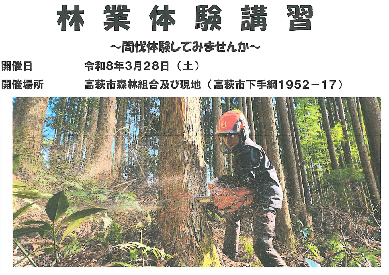 「林業体験講習」開催のお知らせ